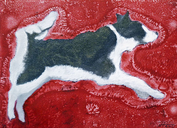 Dogs! What is there not to love? I have two, Reilly and Isadora. They entertain and comfort me, keep me safe and encourage me to be active. Plus, they adore me and I them. They are the inspiration for this collection of Monotypes.