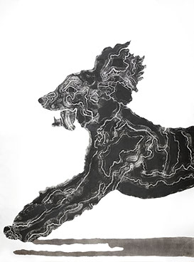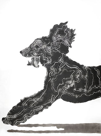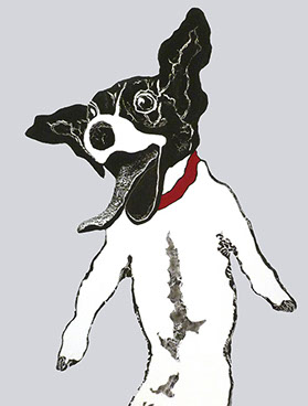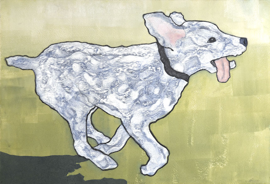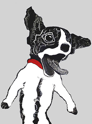 With this body of work, I wanted to capture the moments when dogs are feeling their most joyful and playful and, coincidentally, providing great entertainment for their two-legged friends. I hope these monotypes tickle your funny bone and at the very least make you smile—if they do, well then, I have succeeded as an artist.